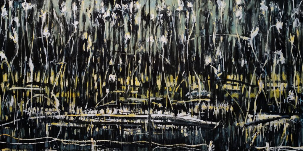 Diptyque S »ur les bords de l’Orne-3″ 162x130x2« Entre chien et loup, sur les bords de l’Orne » 100×100« La cabane de René sur les bords de l’Orne » 100×100« La Maison du Garde » 100×100« La mare de Grimbosc » 120×120« La mare aux grenouilles. Mes premières parties de pêche » 100×100« L’arène » 185×130« Le bassin » 120×120« Le pont de Brie » 100×100« Le pont des Danjou » 162×130« Le Val de Maizet » 100×100« L’écluse St Martin » 110×87« Les bords de la Touques » 120×120« Les bords de l’Orne » 100×100« Les jardins du paradis » 2023 162×130« Pont de Douillet » 120×120