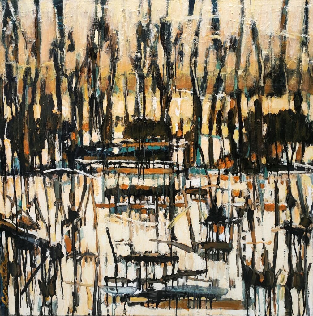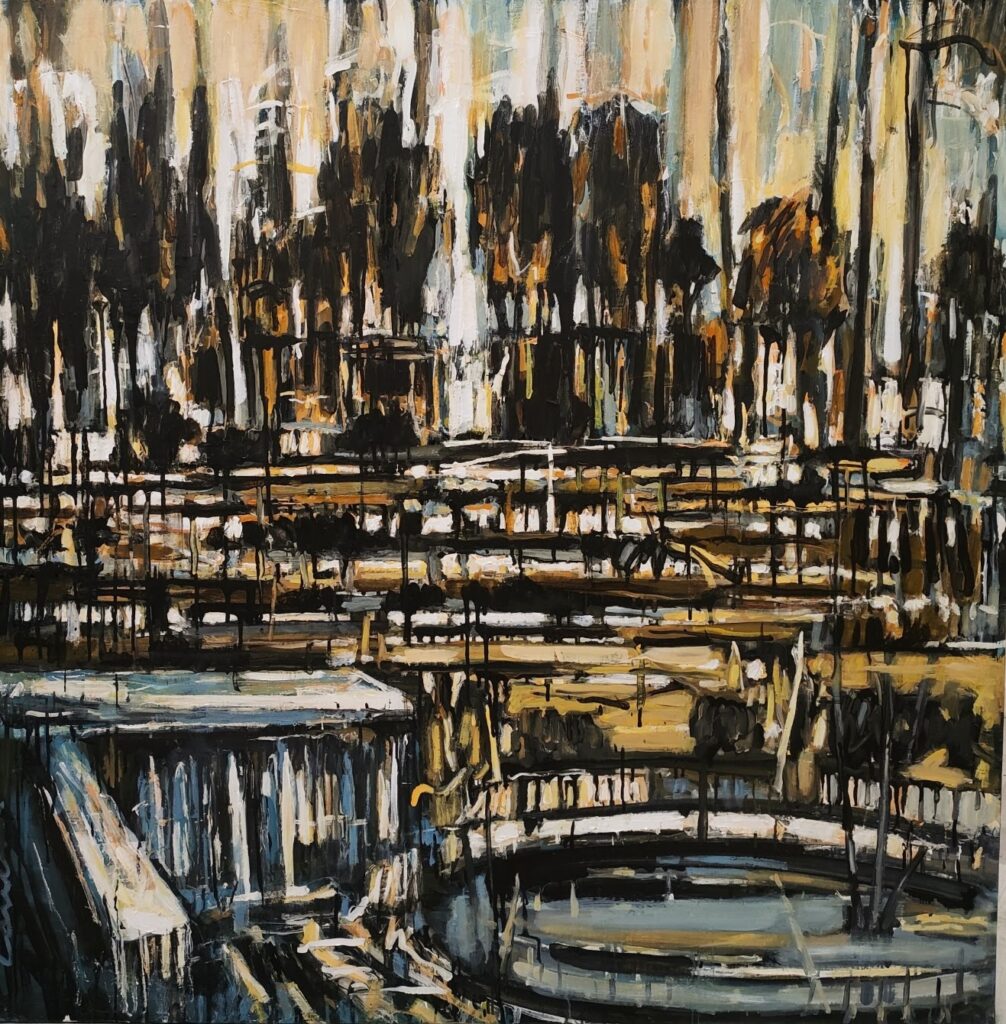« Sur la rive du parc » 100×100 Acrylique sur toile